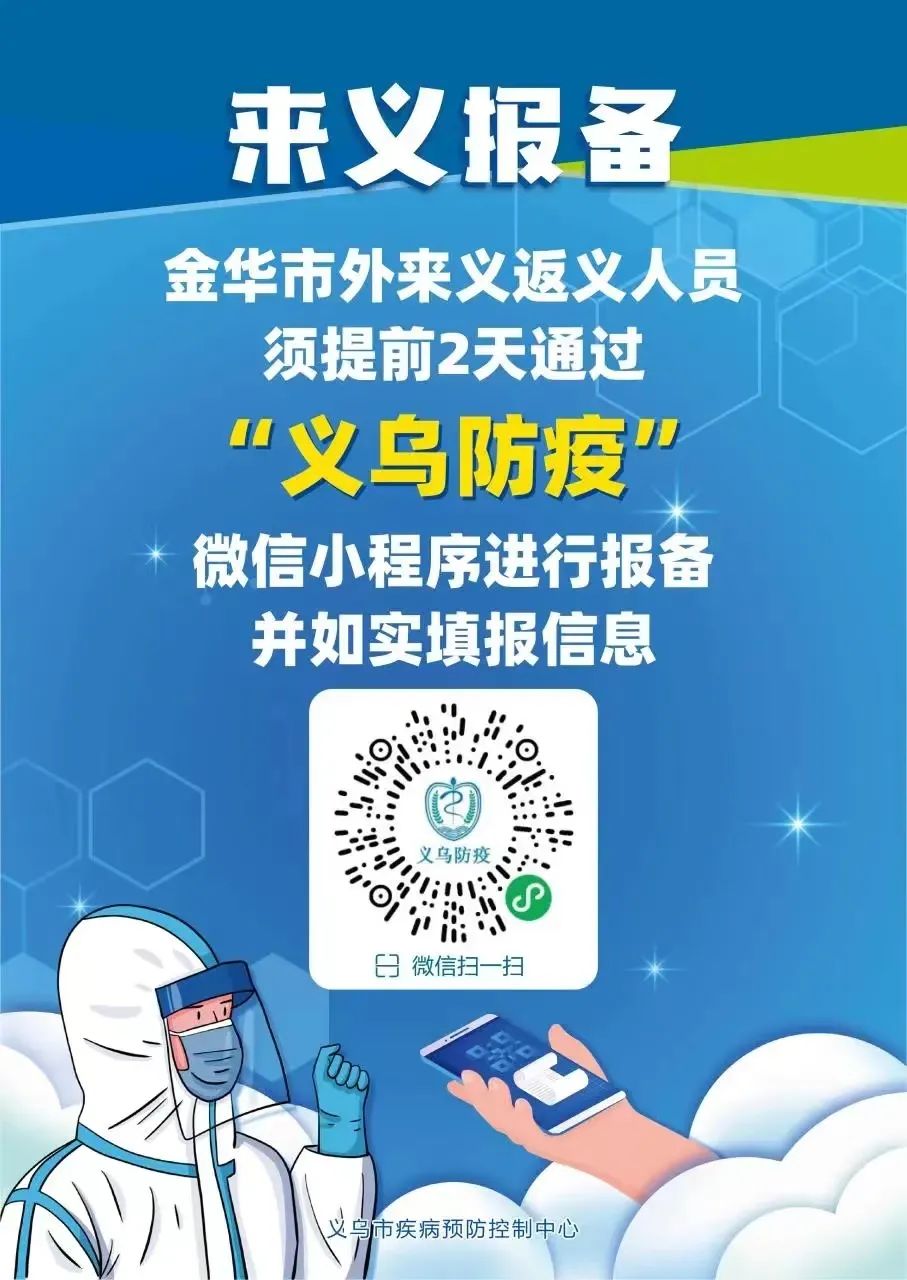 杭州返回义乌的乡贤,须提前2天通过“义乌防疫”微信小程序,(附后)向居所所在村(社区)、单位、酒店进行报备,自觉配合落实相应的健康管理措施。市内乡贤要离义的,须提前2天通过“义乌防疫”进行申报。