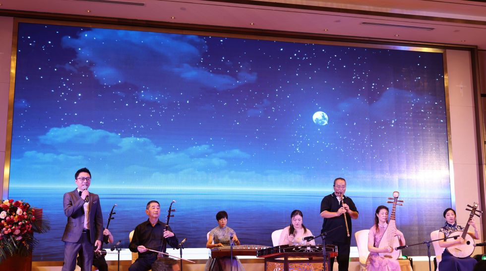 随后,商会企业家与在杭乡贤们参加了中秋晚会,晚会由南京银行杭州分行陈向东乡贤主持。吴良松教授领衔的浙江西子艺术团为乡贤们奉上一场高雅的文化盛宴。商会顾问、中国市民卡工程之父张旭光,商会篮球俱乐部总教练陈毕晟也参加了节目演出。