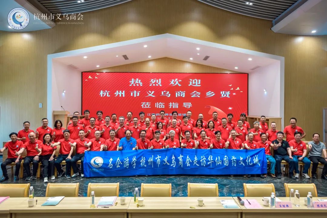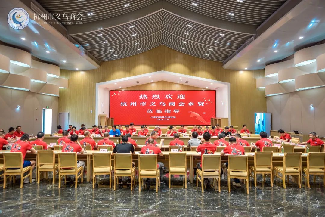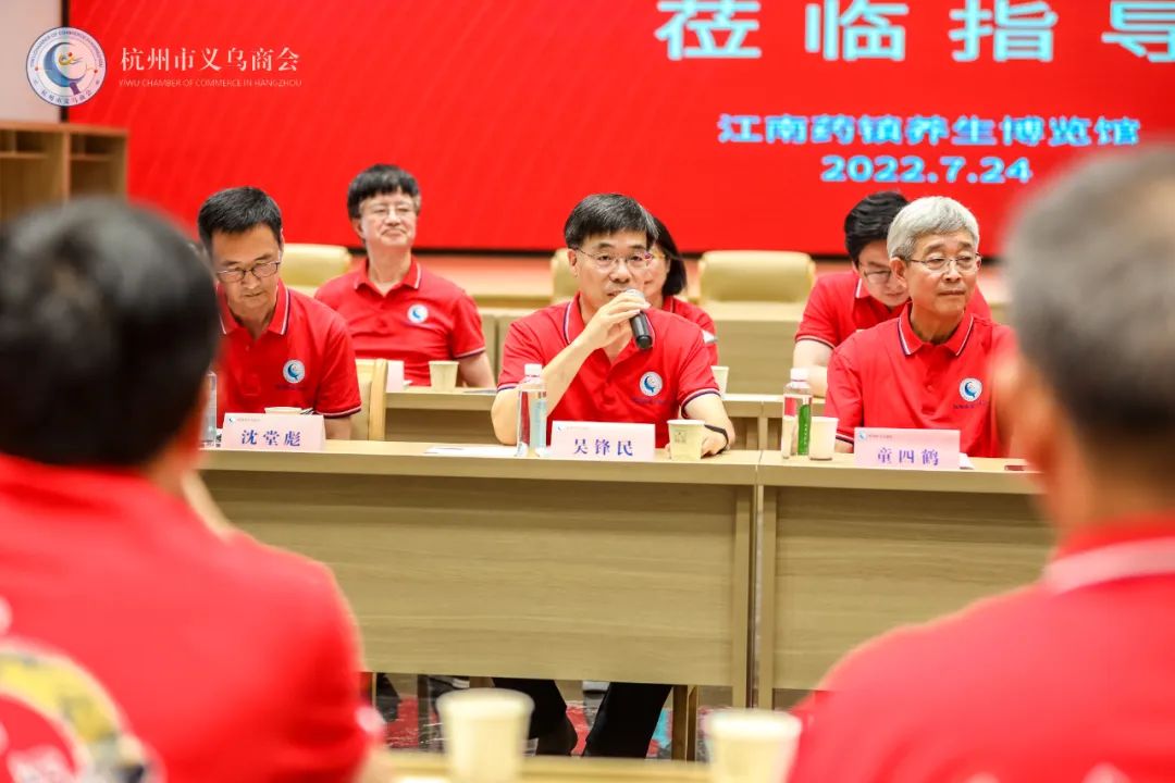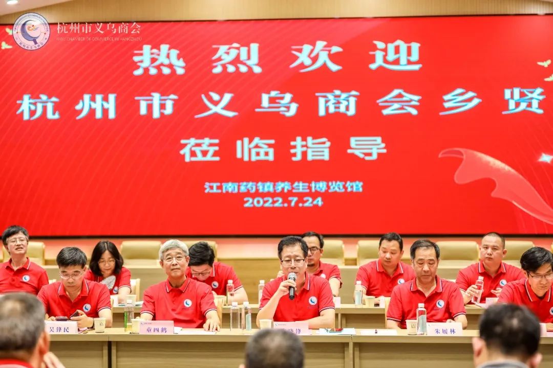 对标名企学习,赋能企业升级。2022年7月24日,杭州市义乌商会考察团一行60余人来到磐安县,参观杭州市义乌商会名誉会长、雪峰集团董事局主席童四鹤旗下产业 “华仙国药文化城”。童四鹤名誉会长全程亲自接待,为乡贤讲解“国医与国药”的今天与明天。