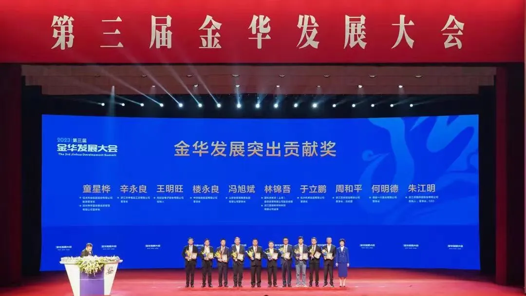 杭州市义乌商会(二届)第二年轮值会长、浙江零跑科技股份有限公司董事长朱江明被授予“金华发展突出贡献奖”。