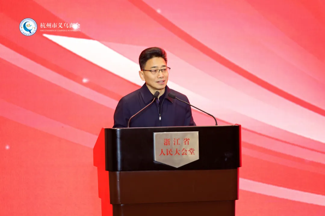 义乌市委常委、统战部部长贾以鸣讲话。贾部长充分肯定了商会自换届以来,认真履行“服务赋能在杭乡贤,反哺家乡建设”的办会宗旨,各项工作都取得了可喜成绩。对商会今后工作提出希望:一是在服务会员发展上有新建树,二是在助力家乡建设上有新作为,三是在搭建联谊平台上有新贡献,通过各种渠道把更多在杭创业、工作生活的义乌人纳入到联络范围。团结凝聚乡贤力量,更好地服务家乡发展。