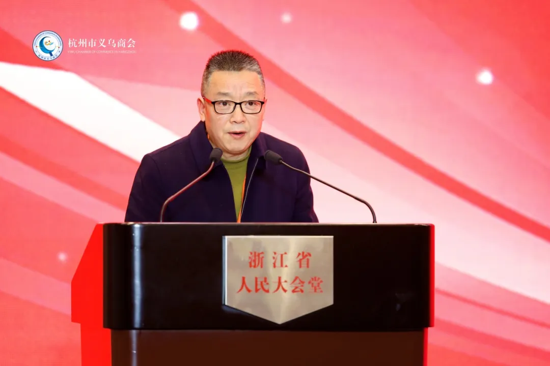 商会会长、浙江科发资本管理有限公司董事长陈晓锋发言。过去的一年,商会坚持党建引领,坚持服务宗旨,坚持创新发展,坚持合作共赢,获得了浙江省工商联颁发的“省四好商会”的荣誉。各位会员心齐气顺,奋发向上,取得了不凡的成就,涌现了一大批值得我们学习的先进人物、先进事迹。特别是刚颁发的“创新先锋奖”获得者常务副会长朱江明,零跑汽车跑出了中国新能源汽车的加速度,获得了玛莎拉蒂母公司15亿欧元的投资,用技术驱动中外车企合作共赢,是我们商会创新创业的典范。我们义乌人不管在什么样的情况下,凭着义乌精神总能脱颖而出。