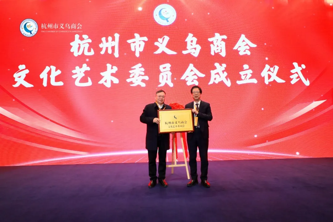 为了更好地架设杭州义乌之间的文化艺术桥梁,经过长期的筹备,在大会上,由商会会长陈晓锋、文化艺术委秘书处负责人朱长根揭牌,宣布商会又一个分支机构-文化艺术委员会正式成立。