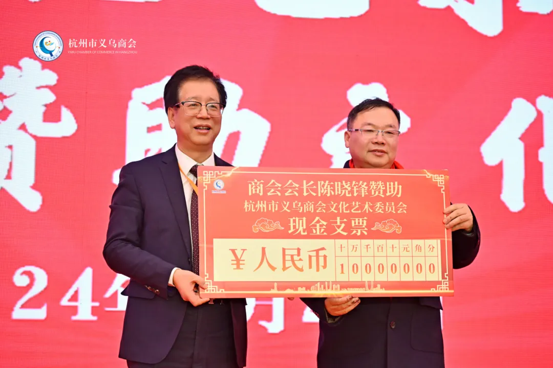 为更好的传播义乌文化艺术,商会会长陈晓锋赞助文化艺术委员会十万元。文化艺术委秘书处负责人朱长根接过这份“暖意”。