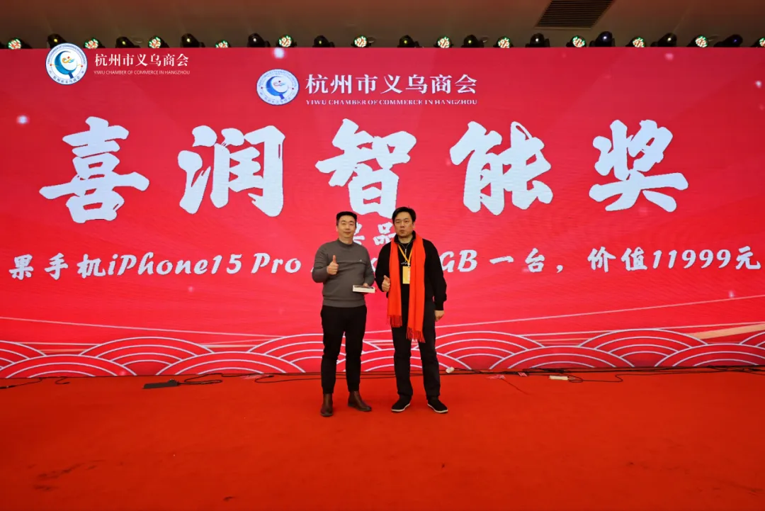 商会副会长、浙江喜润智能建筑科技有限公司董事长王鹤平赞助的苹果手机iPhone15 Pro Max 512GB一台,总价11999元。
