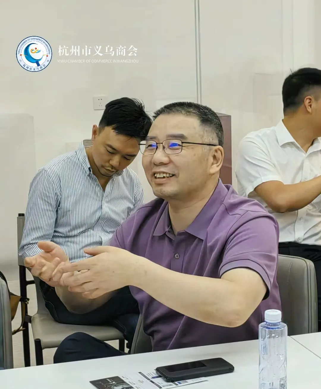 参会成员对悦泰科技的创新成果表示高度赞赏,并对公司未来的发展充满期待。商会监事长余学富提问交流。