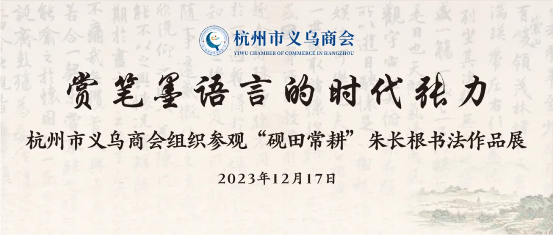 一展迎春,2023年12月17日,杭州市义乌商会名誉会长童四鹤、会长陈晓锋、轮值会长吕世良带队参加“砚田常耕--朱长根书法作品展”开幕式。 本次作品展览由浙江省文学艺术界联合会指导,浙江警察学院、省书法家协会、省警察协会、中共义乌...