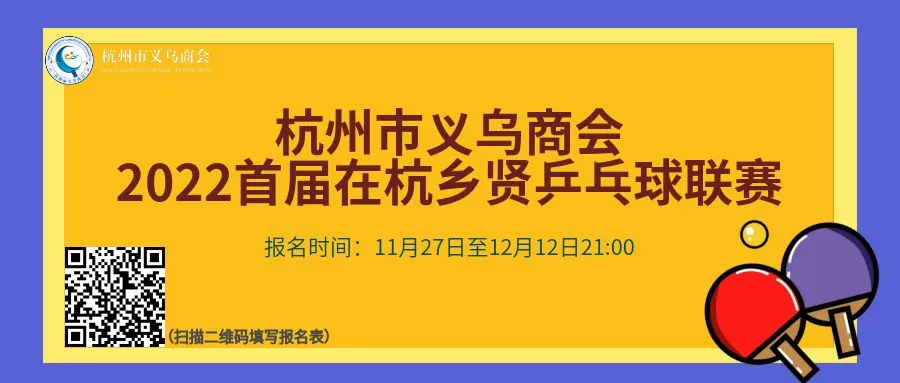 杭州市义乌商会2022首届在杭乡贤乒乓球联赛已正式对外招募参赛乡贤