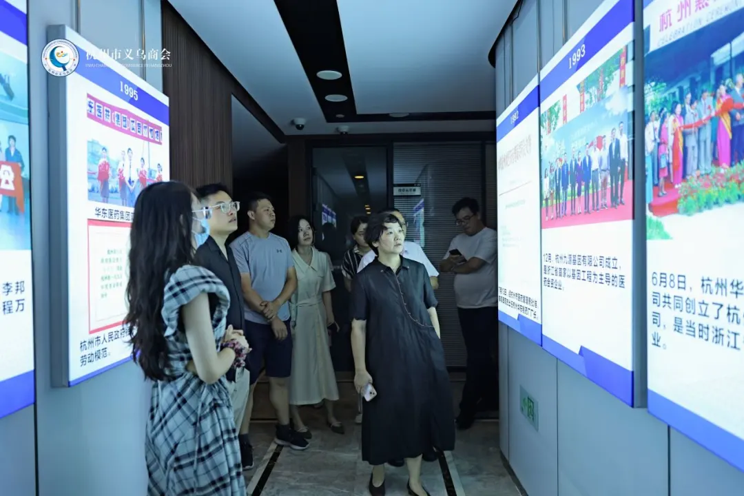 参会人员参观了华东医药集团控股的办公区域。 凭着“要么第一,要么唯一”等经营理念,李邦良名誉会长带领华东人从一个医药小厂开始,创造了一个又一个的辉煌,华东医药在2000年成功上市,市值700亿元。2019年,李邦良名誉会长开始了二次创业。