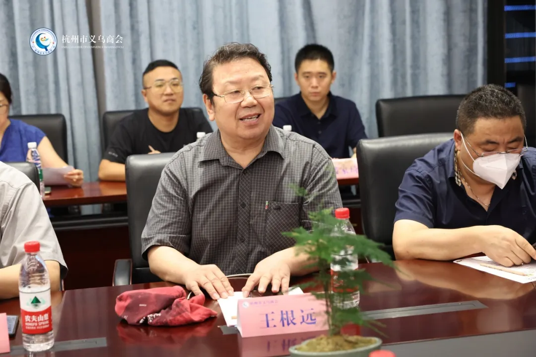 商会荣誉秘书长、原义乌市人民政府驻杭办主任王根远发言