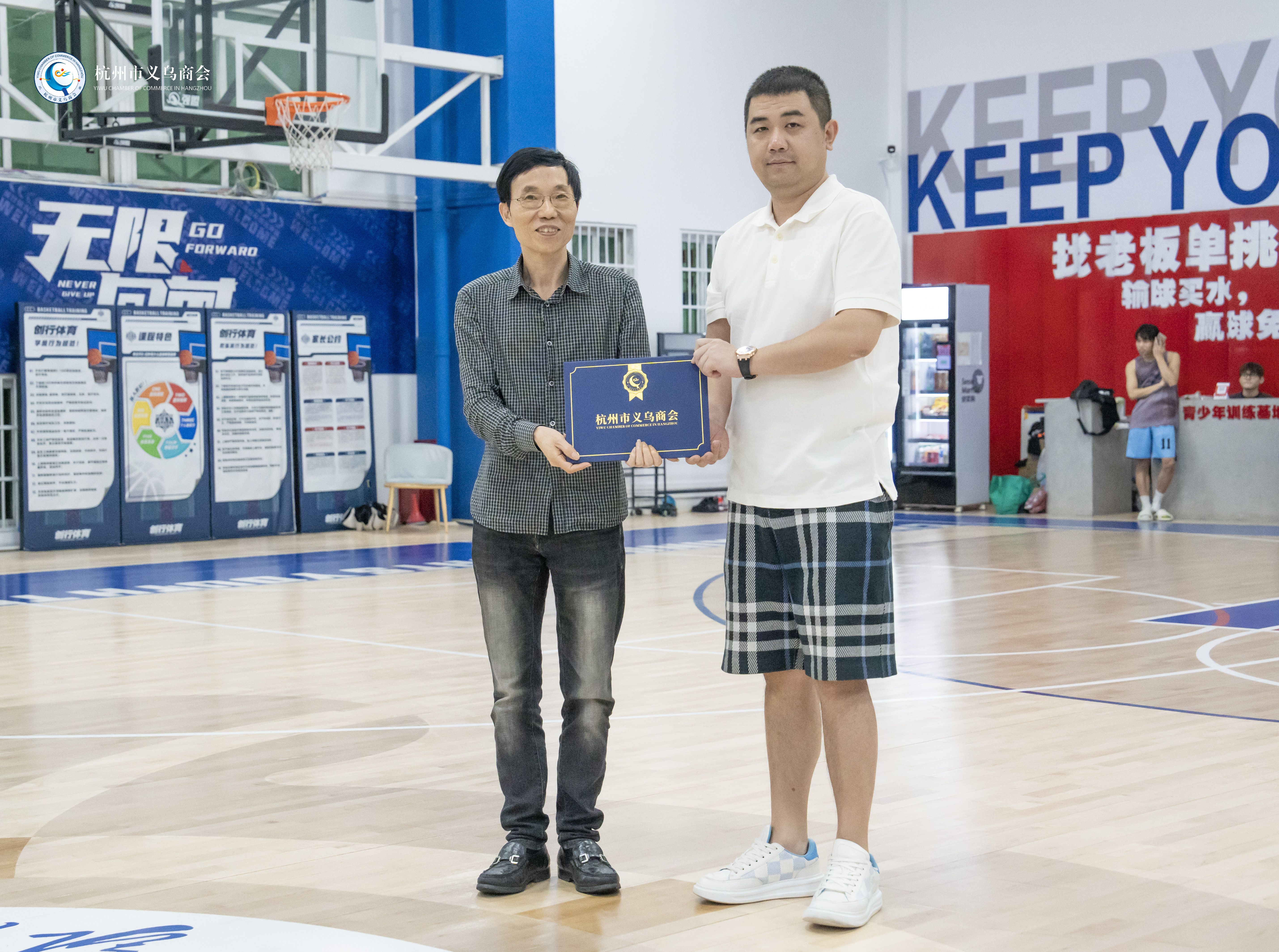 商会轮值会长赵志菲为篮球俱乐部赞助商、商会常务副会长丁超颁发荣誉证书。丁超说,篮球俱乐部有150多位成员,是俱乐部全体成员共同努力的成果,更是凝聚了大家的热情与深厚的友情。祝福篮球俱乐部欣欣向荣,蓬勃壮大!他强调,本次兄弟德比赛事,不仅是球艺的较量,更是友谊的升华,希望本场兄弟德比,赛出友谊,超越自我。
