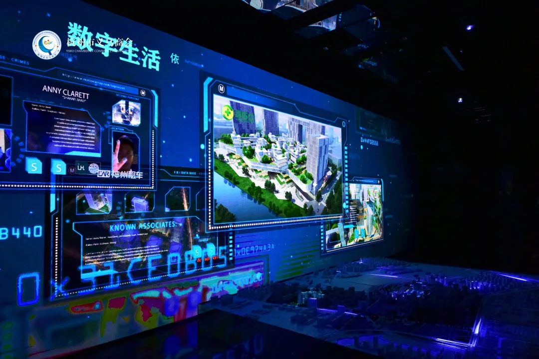 中央展厅以“智慧网谷·赛博空间”为主题,利用360度环屏技术、投影技术、数字沙盘等技术阐述智慧网谷小镇的创立缘起、整体规划与数字经济产业沿革。