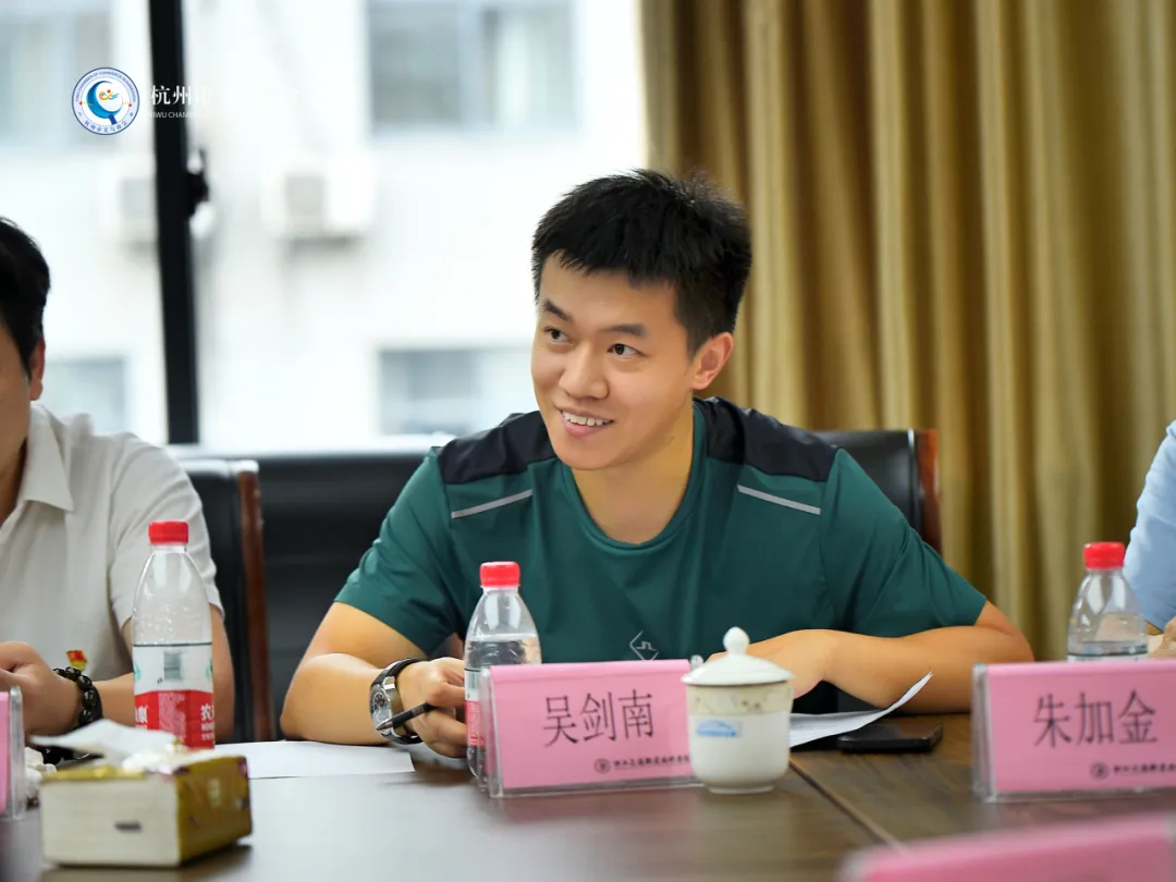 在汽车学院举行的座谈会上,就全国党建工作样板与产学研融合等内容,大家进行了热烈的交流。杭州市义乌商会秘书长叶宏军主持座谈会。