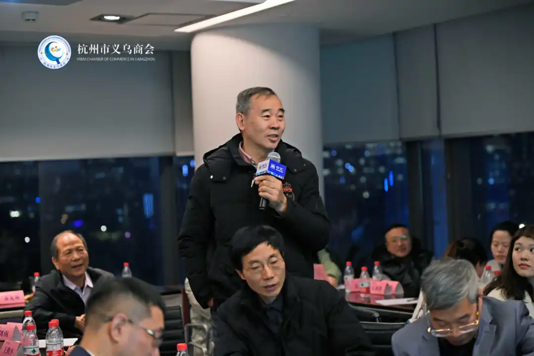 商会监事长余学富提问交流。