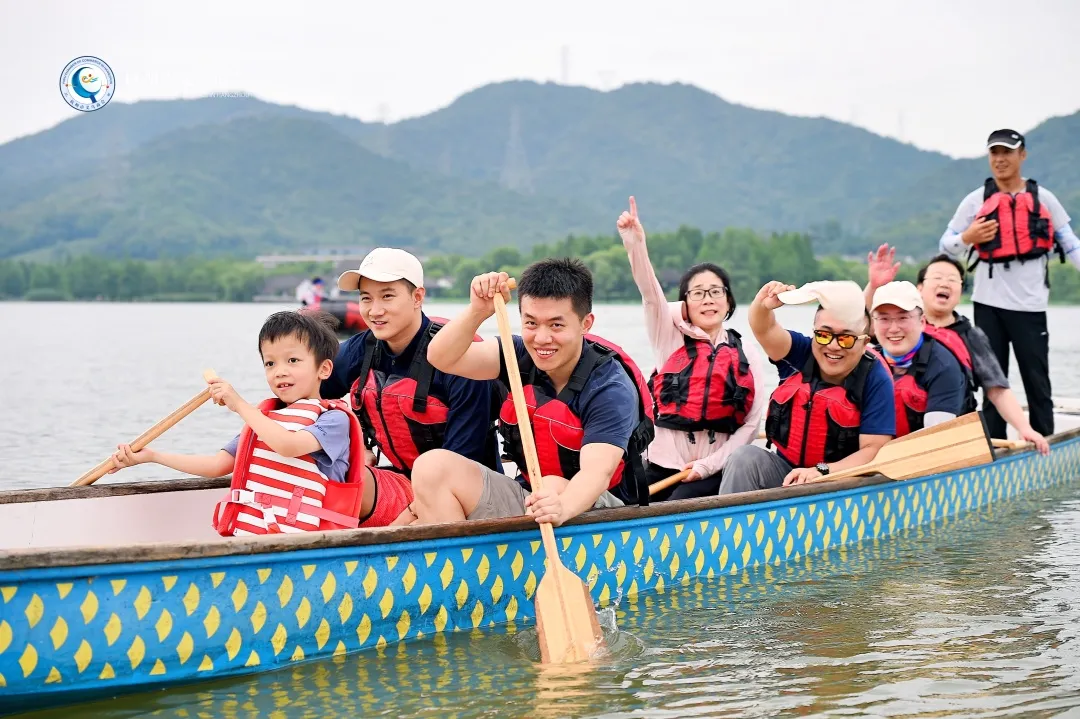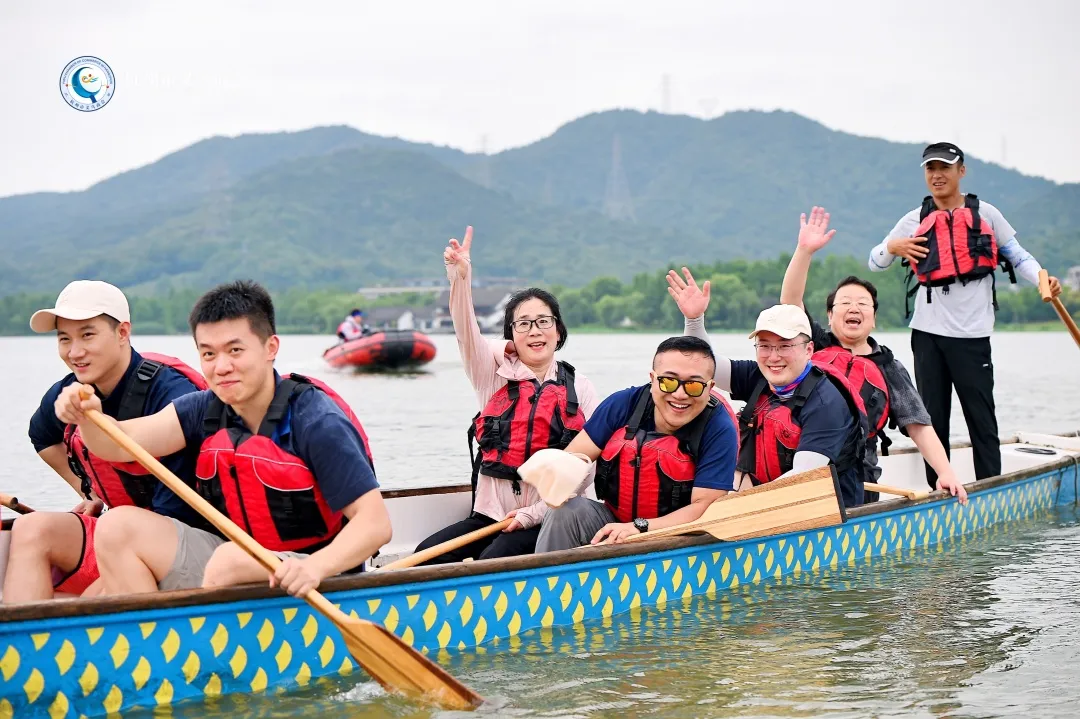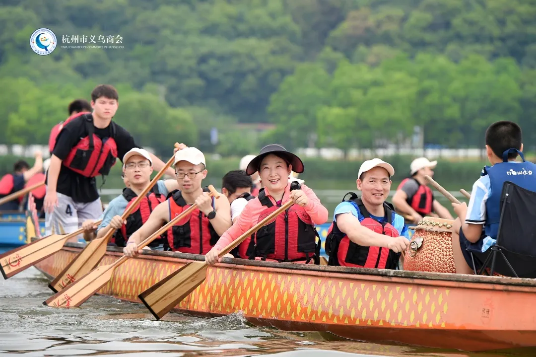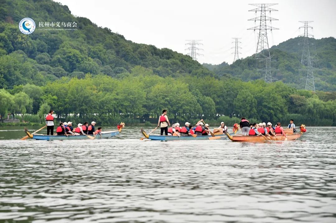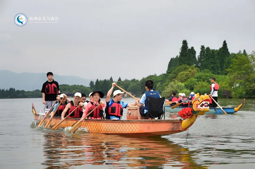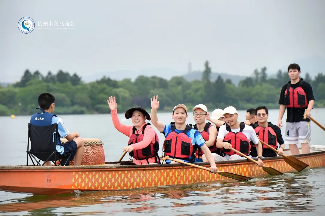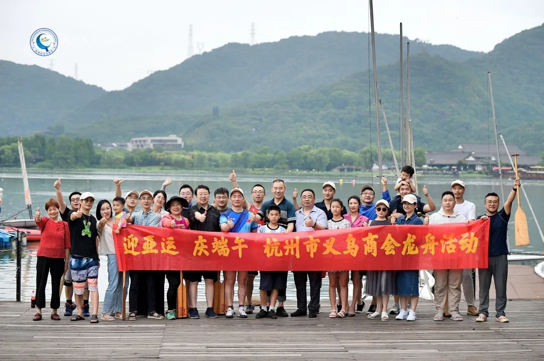 迎亚运,庆端午,2023年6月18日,杭州市义乌商会在湘湖举办赛龙舟活动,龙舟竞渡,乘风破浪,用一场热血的传统龙舟赛,嗨翻端午节。
