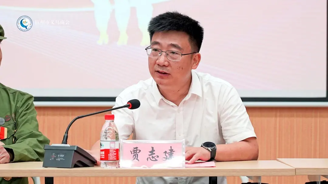 赤岸镇党委书记贾志建发言。贾书记说,好事成双,去年商会红色返乡之旅到赤岸,也是在7月23日。目前,赤岸镇健在的抗美援朝老兵有16人,革命先辈们为了伟大胜利,出生入死,洒尽热血。尊重历史最好的方式,就是创造新的历史,在红色精神的指引下,赤岸镇曾经是农业重镇,这些年连续位列金华市工业强镇前茅,一手画好生态画卷,一手绘制奋进蓝图,打造了一个无中生有的工业强镇。