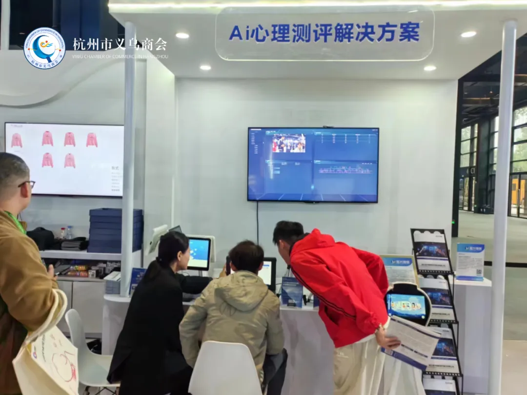 博览会还首次推出以“未来之境”为主题的未来生活数字体验馆,可以沉浸式互动体验智能驾驶电动汽车、AI心理测试、AI中医经典理论和治疗技术等数诸多项目,吸引了商会参观团的目光。