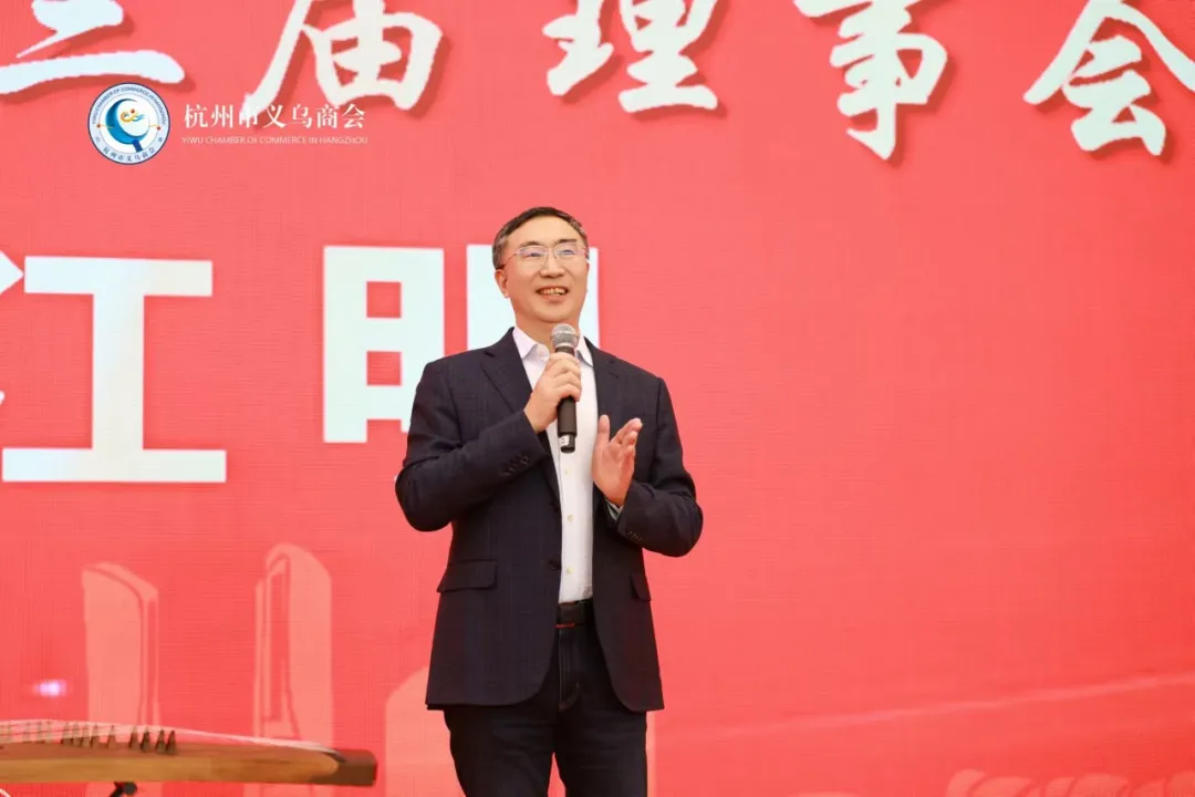 朱江明说,义乌市委书记王健亲自为我授牌,深感使命光荣,责任重大,从陈晓锋会长手中接过商会的旗帜,收到了沉甸甸的信任,接到全球各地兄弟义乌商会的贺信,感受到了满满的祝福。在第二个十年奋斗目标的赶考路上,我们要一起携手,弘扬“鸡毛换糖”精神,办好商会,干好事业,助力家乡,为“打造典范 再造辉煌”贡献在杭义乌人的力量。