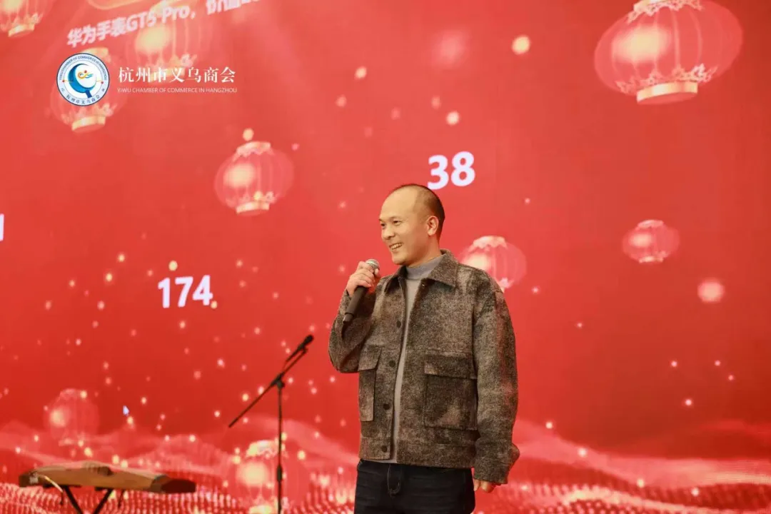 商会会员、浙江丰骏汽车技术服务有限公司总经理刘献峰赞助纪念奖--100 份义乌红糖(袜子)礼盒,价值 200 元/份,总价值20000元,二等奖--3 份华为手表 GT5 Pro,价值 2800元/份,总价值 8400 元。